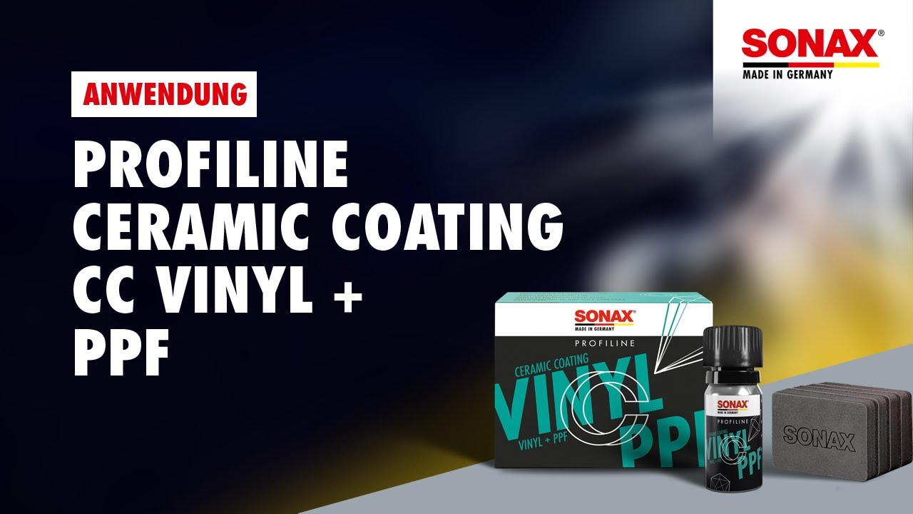 SONAX PROFILINE Ceramic Coating CC Vinyl+PPF is a special one-stage coating with long-term effect for coloured wraps and paint protection films on vehicles. Thanks to its flexible structure, it forms a stable bond with the films and provides an outstanding water and dirt-repellent effect. It enhances the colour depth on both glossy and matt wraps while retaining their shine. Makes the films pleasantly soft to the touch. Set with 4 application pads.