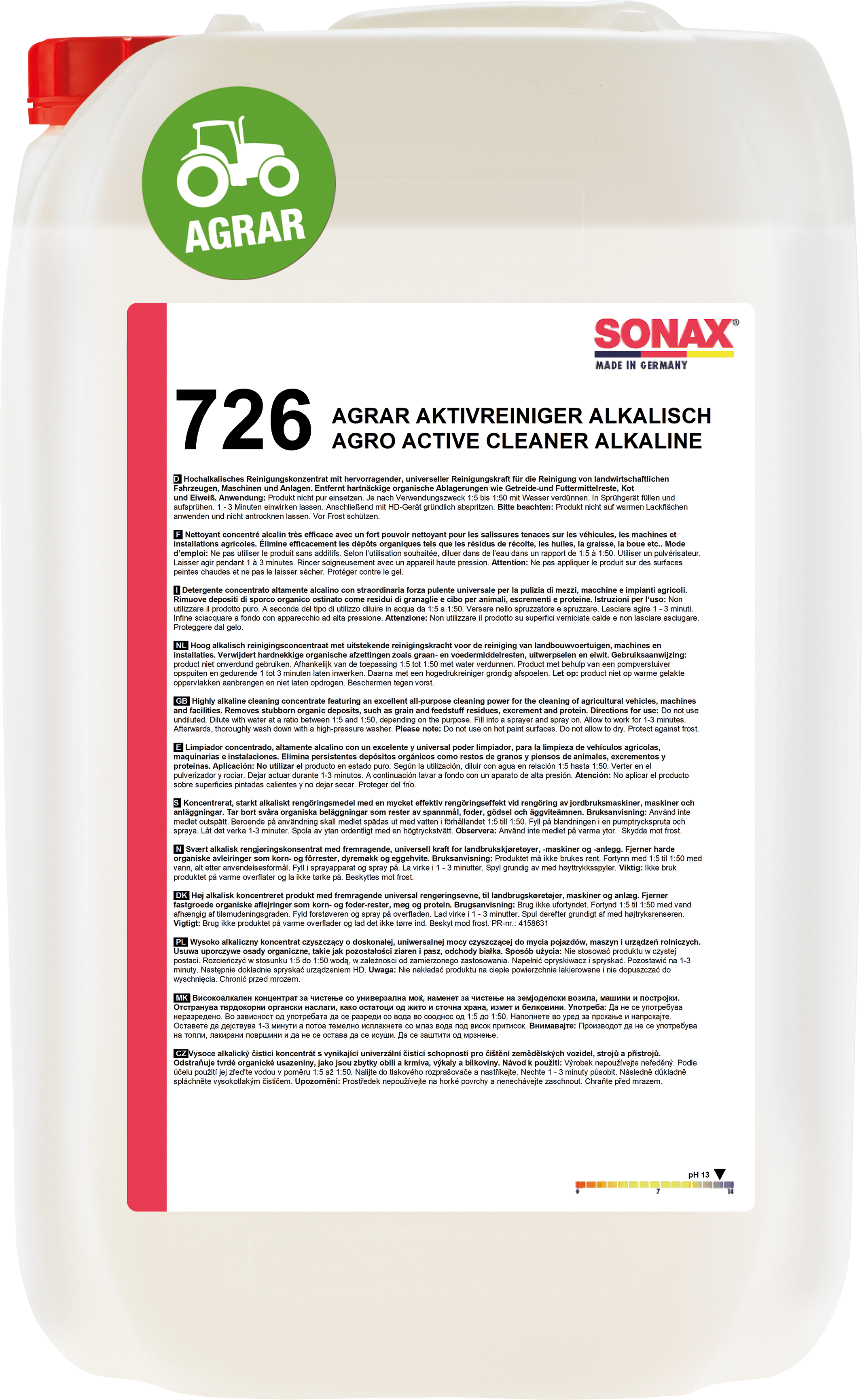 Dilute with water at a ratio between 1:5 and 1:50, depending on the purpose. Spray surfaces to be cleaned using a suitable sprayer. Allow to work for 1-3 minutes. Afterwards, thoroughly rinse with a high-pressure device.