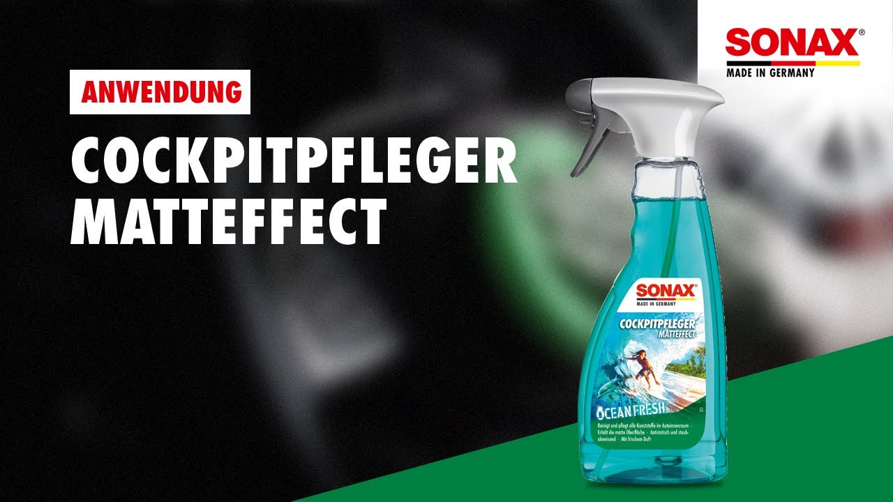 Shake before use. Spray Cockpit Spray Matt effect Ocean-fresh onto a Care Pad for Plastics or a soft, lint-free cloth. Evenly wipe surfaces to be treated and let dry. Do not use on hot surfaces, leather, steering wheels, pedals, windscreens, radios, or navigation equipment.
