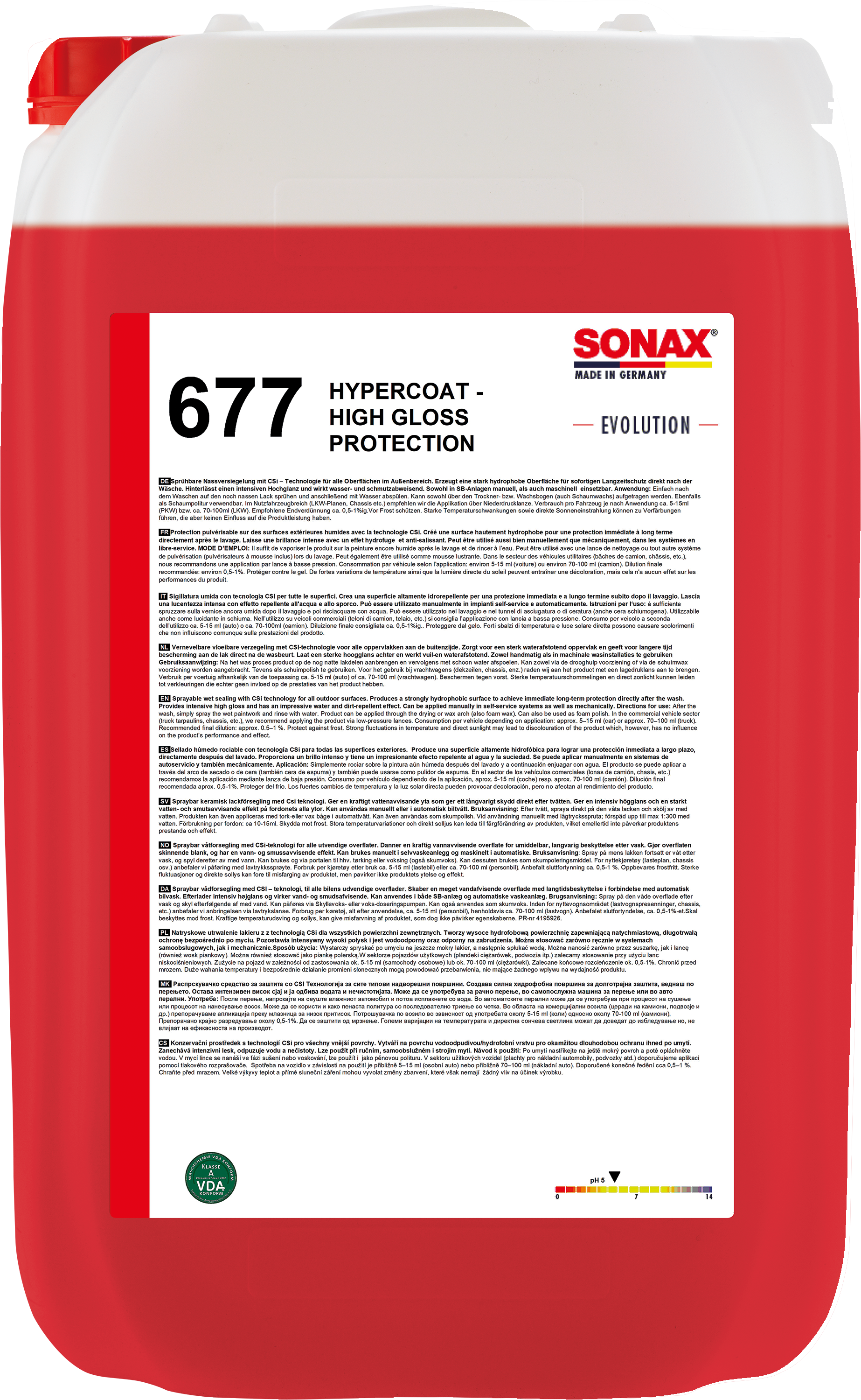 After the wash, simply spray the wet paintwork and rinse with water. Can be applied through the drying or wax arch (also foam wax) and can also be used as a foam polish. In the utility vehicle sector (HGV tarps, chassis, etc.) we recommend application using a low-pressure lance. Consumption per vehicle: approx. 5-15 ml (cars) or approx. 70-100 ml (HGVs) depending on application. Recommended final dilution: approx. 0.5-1 %.