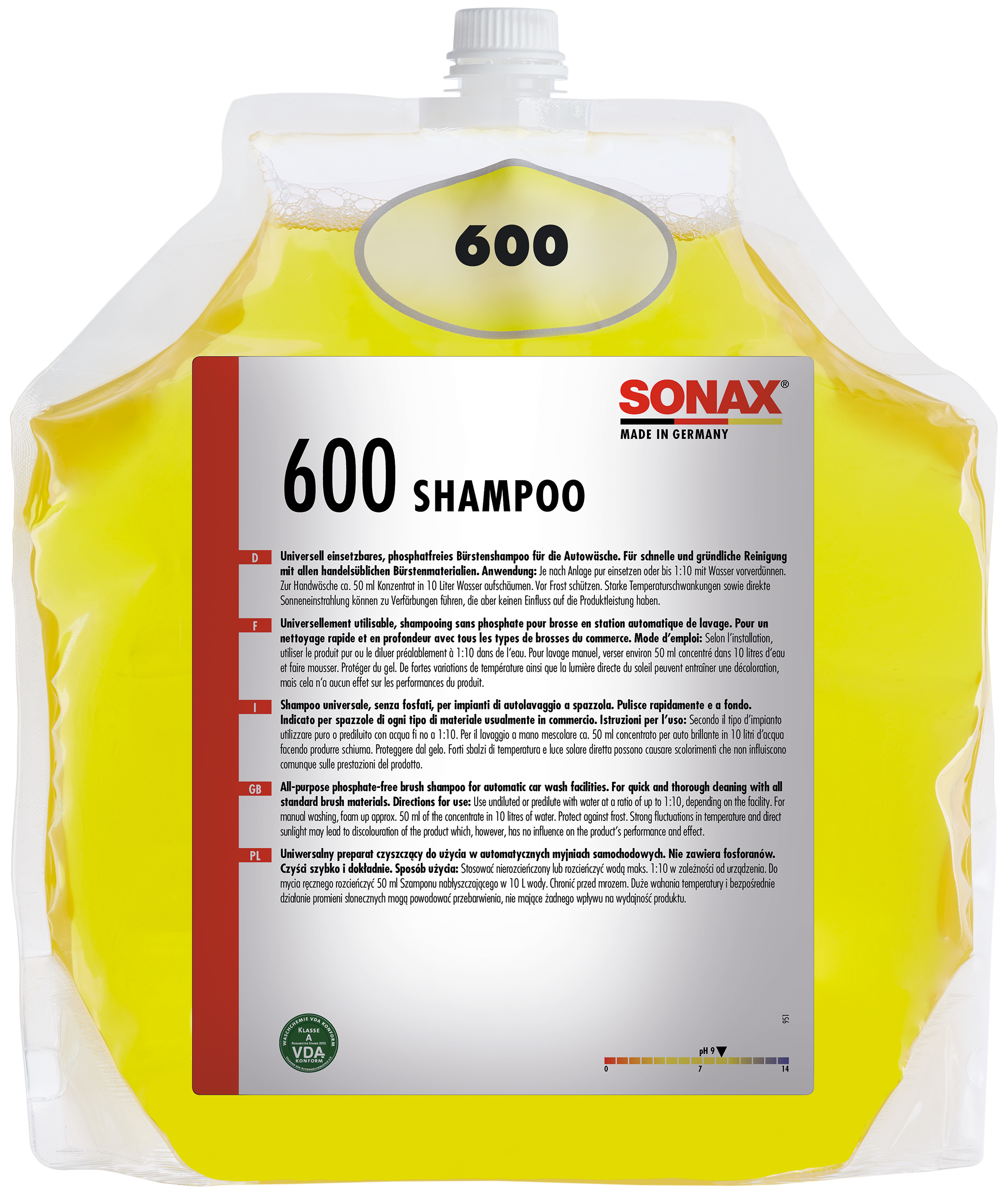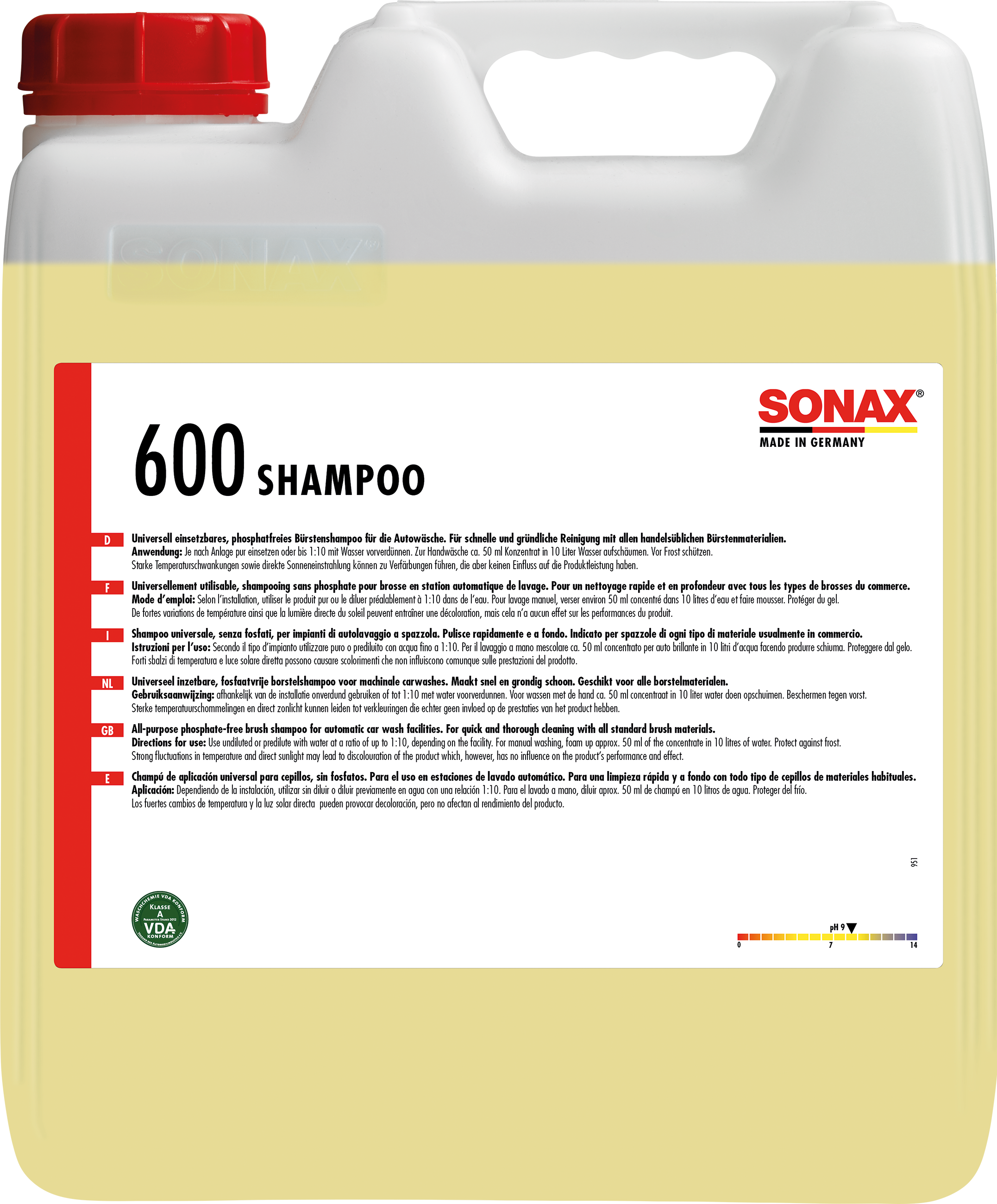 Use undiluted or predilute with water in a ratio of up to 1:10, depending on the facility; spray onto the vehicle using a doing pump. Consumption per vehicle: approx. 10-15 ml. Can also be used for manual washing in a ratio of approx. 1:20.