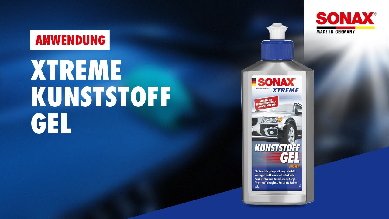 Wash vehicle and let dry. Pour the gel into a soft sponge, e. g. SONAX Sponge Applicator super soft or SONAX Application Sponge and apply a thin layer to the dry plastic surfaces to be treated and spread. Leave to work briefly to form an optimal protective layer. Do not apply too thickly, as this may attract dust. Do not apply in the interior and to pedals or steering wheels. Not suitable for quads. SONAX TIPP: For the best possible preparation, we recommend cleaning the surface with SONAX XTREME Tyre and Plastic Cleaner (Art. No. 02694000).