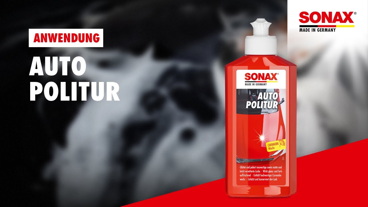 Lavar el coche con SONAX Champú brillo. Agitar el frasco antes de usar. Aplicar una capa fina sobre la pintura húmeda o seca con SONAX P-Ball o SONAX Esponja aplicadora y frotar inmediatamente con presión media. Trate siempre los componentes unidos (por ejemplo, capó, techo) en una sola operación. Por último, eliminar los restos de pulimento con el SONAX paño de microfibra exterior. No aplicar en piezas de plástico sin pintar.