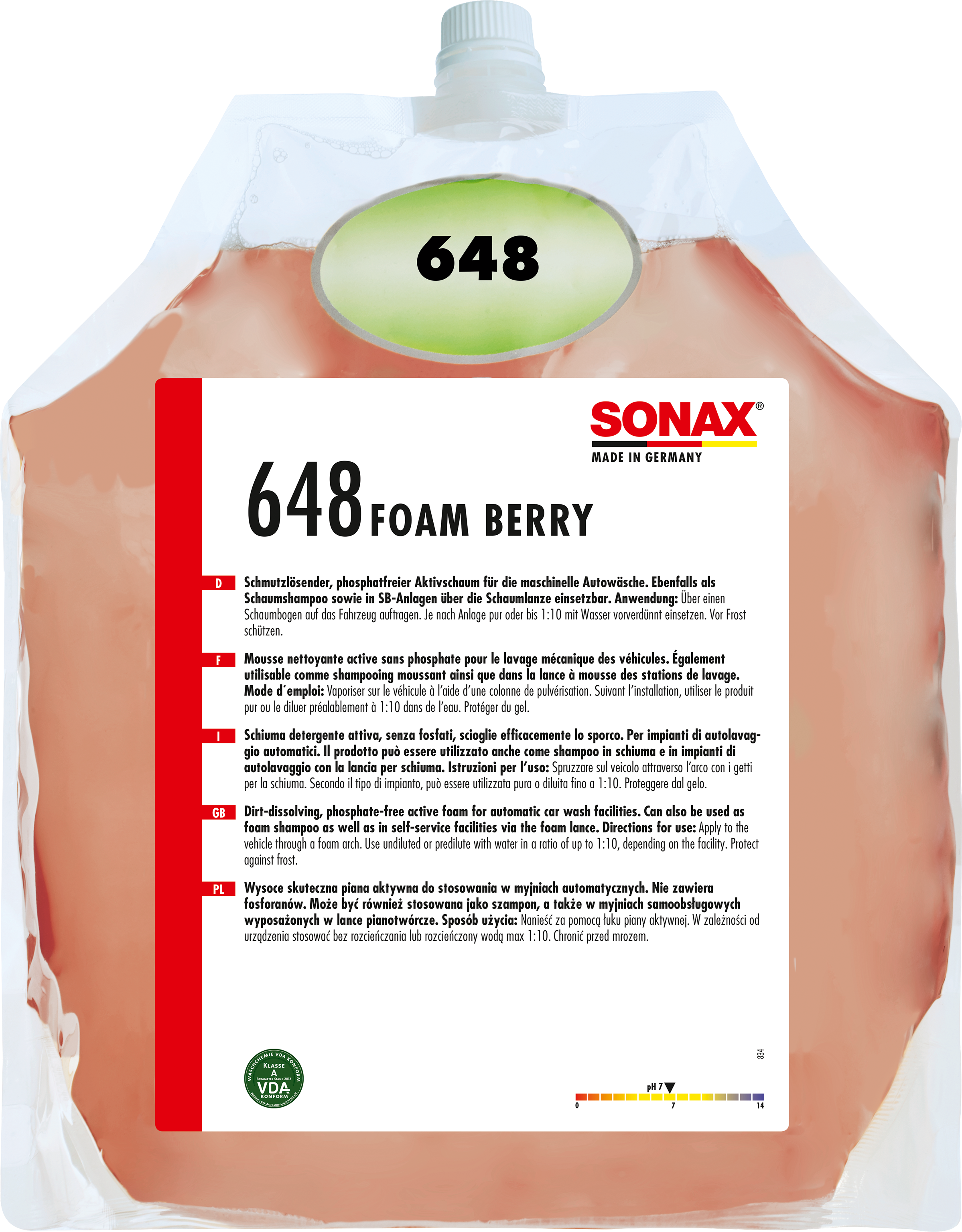 Aplíquelo al vehículo con un arco de espuma. Según el sistema, utilizar puro o prediluido con agua hasta 1:10. Optimizar el patrón de espuma utilizando una mezcla de aire/agua y el consumo de productos químicos. Consumo por vehículo aprox. 5-10 ml.