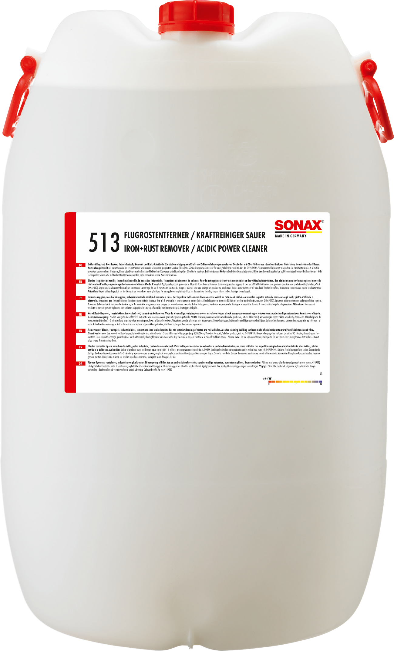 Potente limpiador ácido para la eliminación intensa y completa de residuos agresivos de óxido y polvo industrial de todas las superficies pintadas y piezas de plástico pintadas. Elimina también los típicos depósitos calcáreos de suelos de naves, baldosas y piezas de plástico. Funciona de forma rápida y fiable y es fácil de usar. Ideal para limpiar todas las superficies resistentes a los ácidos (incluidas las de acero inoxidable). Limpieza especialmente profunda gracias a su fórmula ácida.