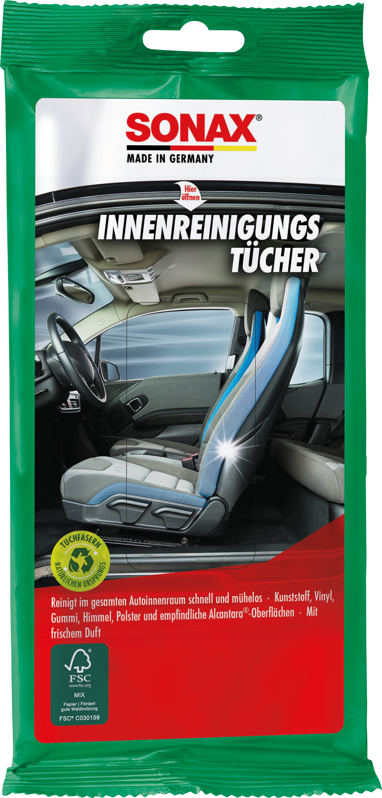 Retire la tapa completa del dispensador. Retire la película de sellado y vuelva a colocar la tapa. Presione hacia abajo la abertura del dispensador de la tapa y tire del primer paño hacia arriba desde el centro del rollo de paños. Limpie las superficies sucias con los paños húmedos. Para evitar diferencias de color y brillo entre las zonas tratadas y las no tratadas, aplique el producto siempre sobre toda la superficie (por ejemplo, el asiento). Cuando limpie el parabrisas, pásele un paño seco si es necesario. Vuelva a cerrar la tapa después de cada uso. No almacenar por encima de 50 °C.